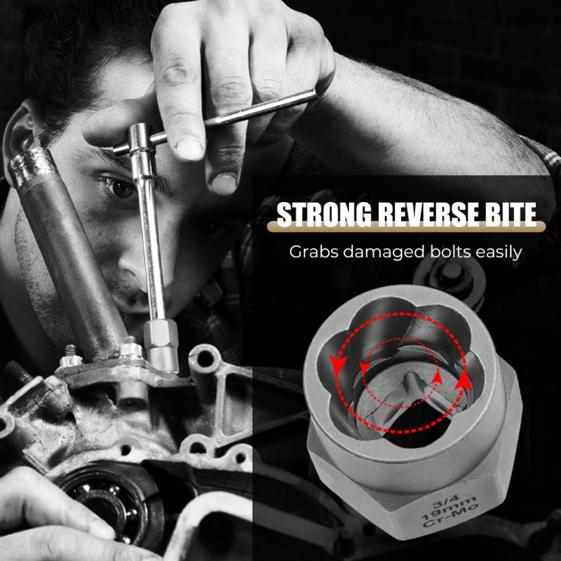 KRAFTIGT GREPP OCH ENKEL BORTTAGNING: Den omvända spiralformen biter tag i skadade, rostiga eller rundade muttrar och bultar, vilket garanterar snabb och smidig borttagning varje gång.
