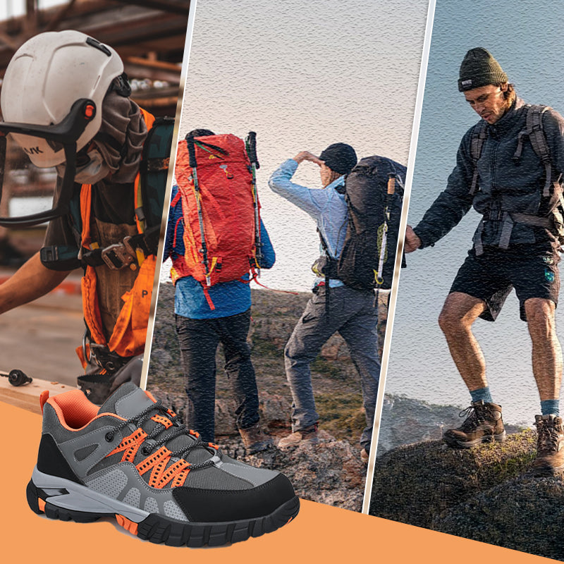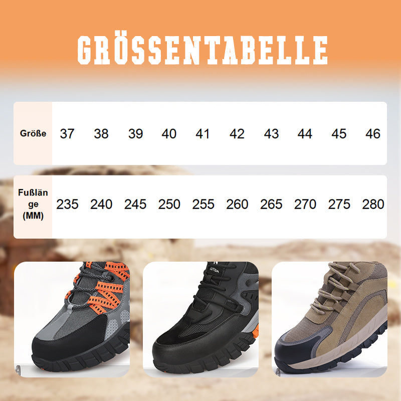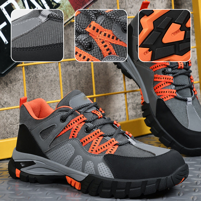 Bekväma, halkfria, avslappnade säkerhetsskor för vandring
