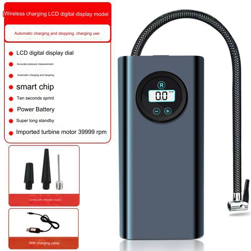 4. Bekväm och lätt att använda: Den bärbara däckpumpen är designad för att vara användarvänlig och bekväm att använda. Den har en tydlig LCD-skärm, intuitiva knappkontroller och LED-lampor för att indikera laddningsstatus och trycknivå. Det ergonomiska handtaget gör den bekväm att hålla i och använda.