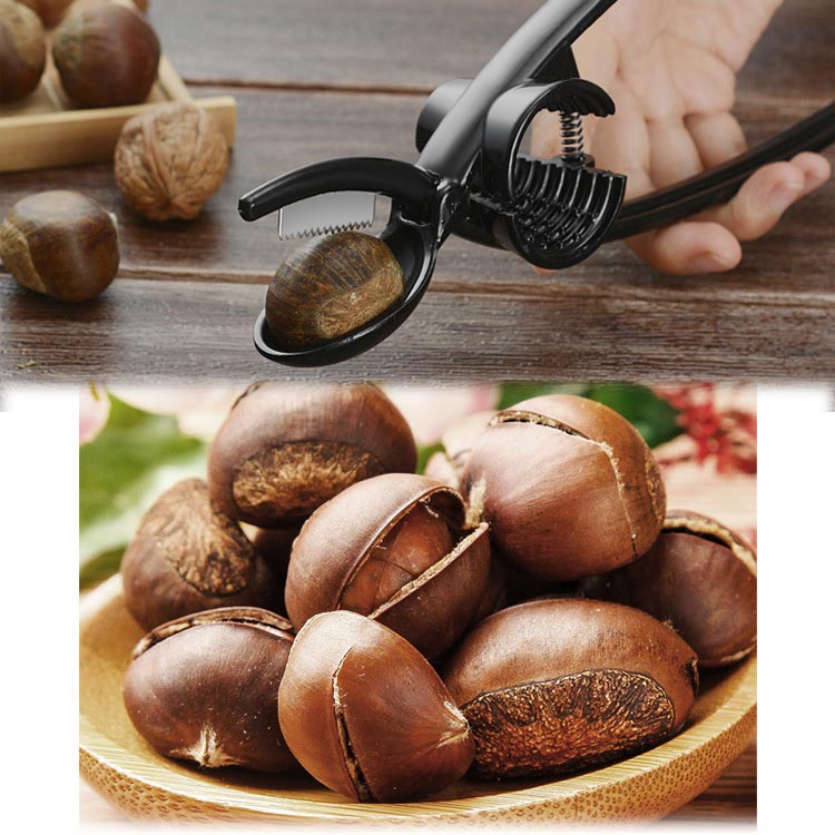 Denna mångsidiga 2-i-1 kastanjeskärare och nötknäppare är designad för att effektivt skära genom kastanjer och samtidigt knäcka olika typer av nötter med lätthet. Perfekt för valnötter, pekannötter, hasselnötter, mandlar, brasilianska nötter och mer.