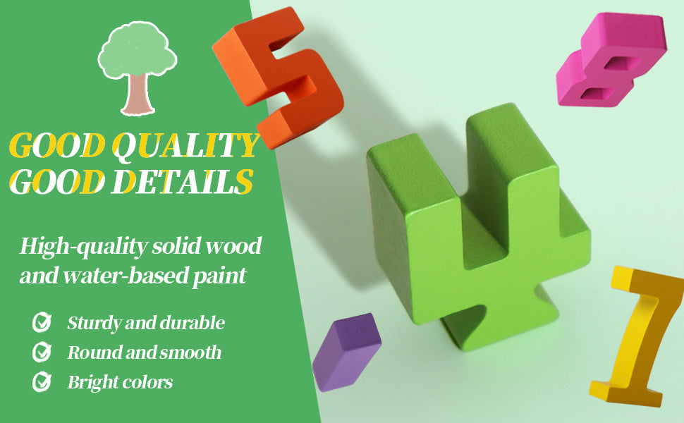 đż Naturligt trĂ€hantverk: Dessa block Ă€r tillverkade av hĂ„llbart, miljövĂ€nligt trĂ€ och Ă€r sĂ€kra och utformade för att hĂ„lla lĂ€nge, vilket gör inlĂ€rning bĂ„de taktil och rolig!