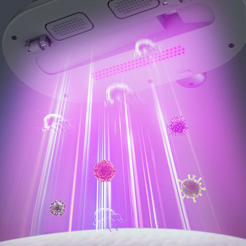 - UV-C ultravioletta strÄlar, penetrerar ytskiktet för snabbverkande kvalster och sterilisering.