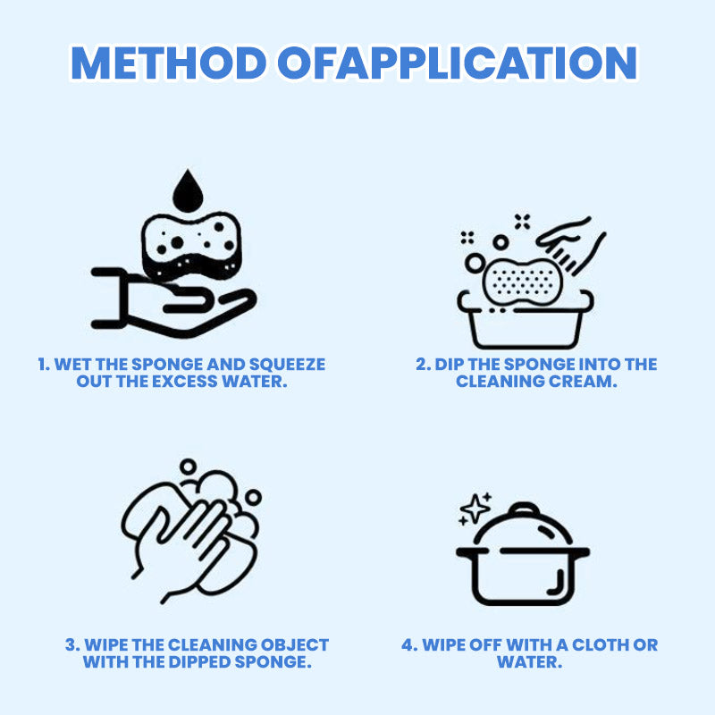 ENKEL RENGÖRING - Denna rengöringskräm gör hushållsarbetet både enkelt och effektivt. Applicera bara och skrubba med svampen som medföljer rengöringskrämkrukan för att enkelt ta bort smuts, fett och smuts.