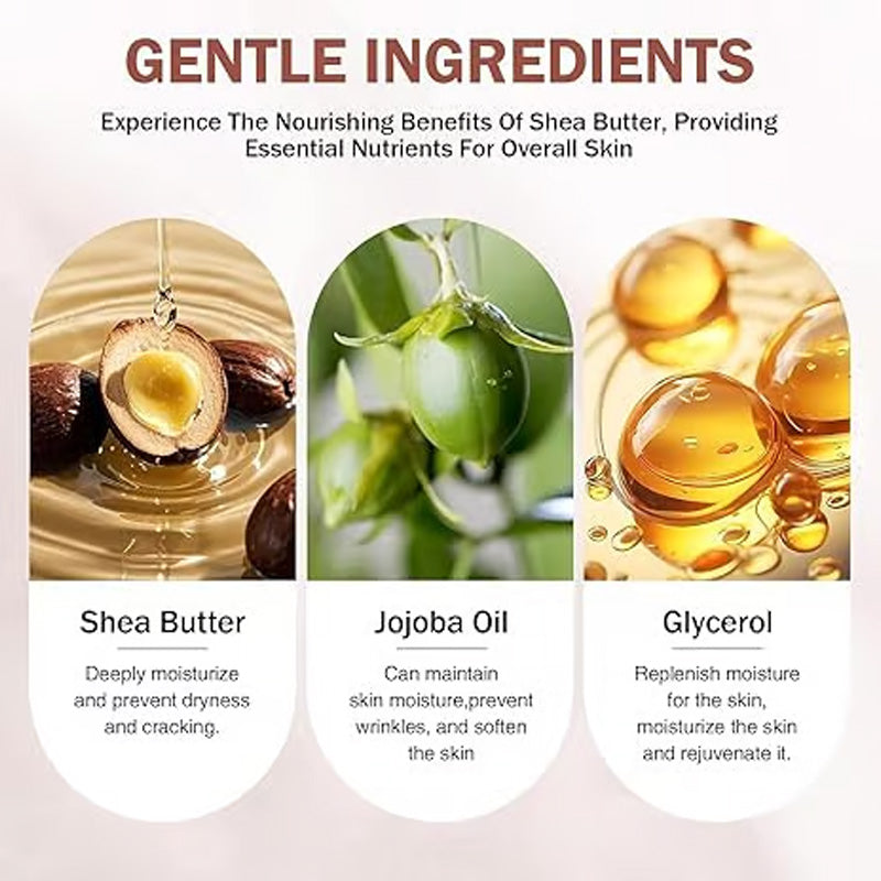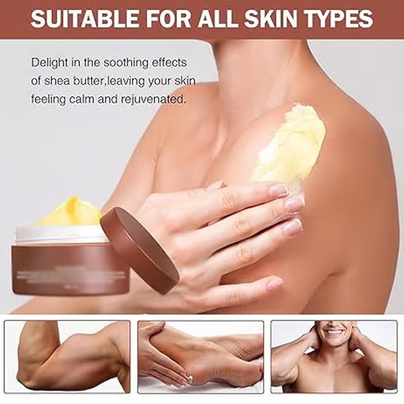 LUGNANDE EFFEKT – Med sin varma och charmiga doft kan du njuta av sheasmörets lugnande effekt, som får dig att känna dig uppfriskad och självsäker hela dagen. Det är mer än bara hudvård – det är ett oemotståndligt val för din dagliga rutin.