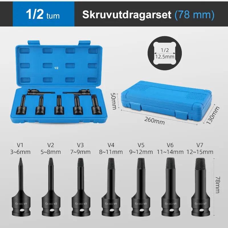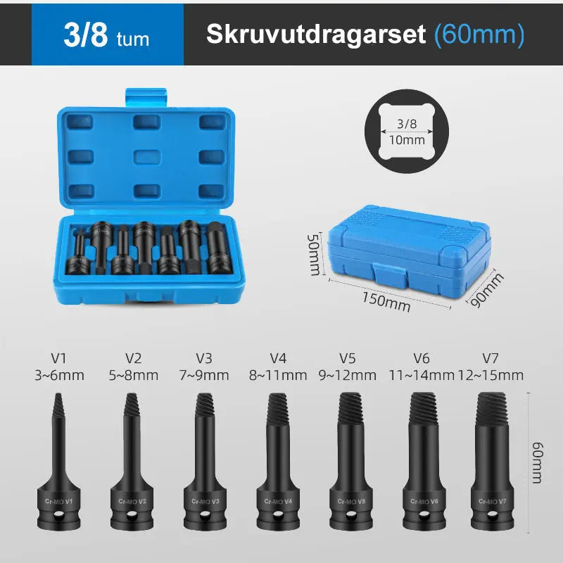 MÅNGSIDIGT SKRUVTAGNING - Tar effektivt bort skadade skruvar, brutna stift, inställda skruvar och rostiga skruvbeslag med lätthet.