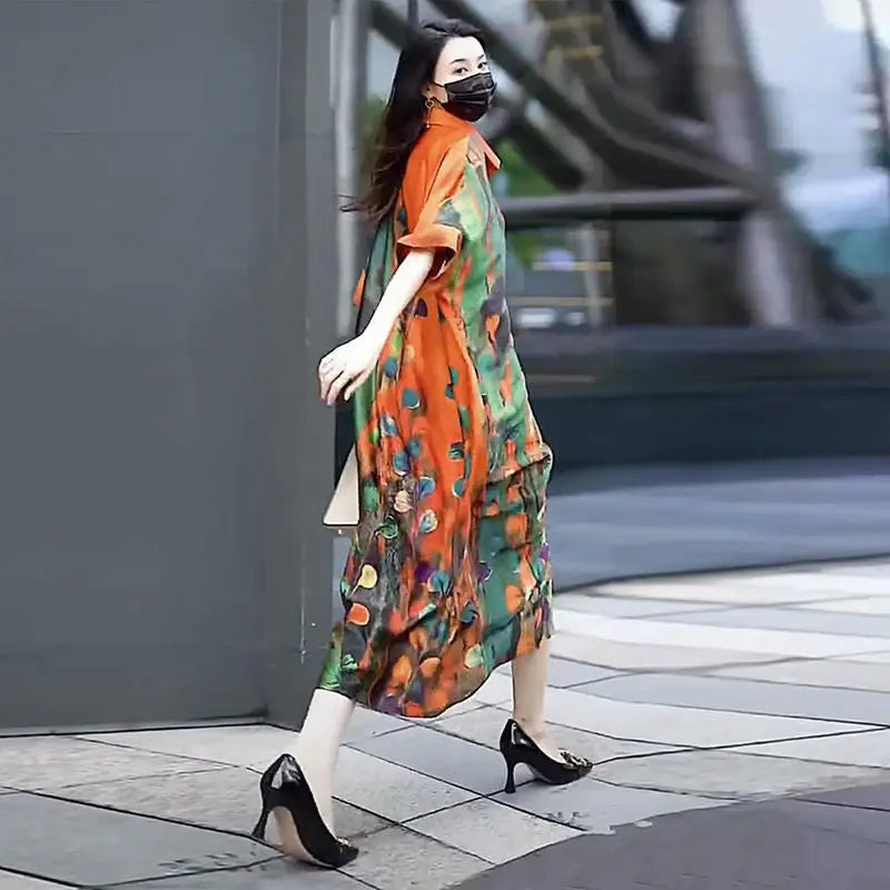Klänningens lösa passform ger en bekväm och avslappnad känsla. Den är lätt och andas, så du kommer inte att känna dig nedtyngd eller överhettad. Tyget är också otroligt mjukt, så du kan bära den hela dagen utan att känna dig obekväm.