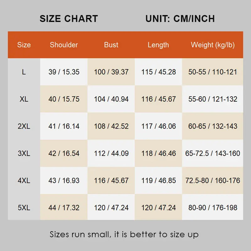 Storlek: L, XL, 2XL, 3XL, 4XL, 5XL
