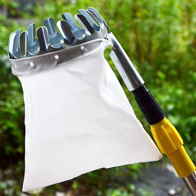 ENKEL ATT ANVÄNDA - Installera fruktplockningsverktyget på en förlängningsstav och använd ringens tänder för att skära ner frukten, samla dem i fruktplockarpåsen. Plocka frukt utan att klättra på en stege, utan skada på frukt eller träd.