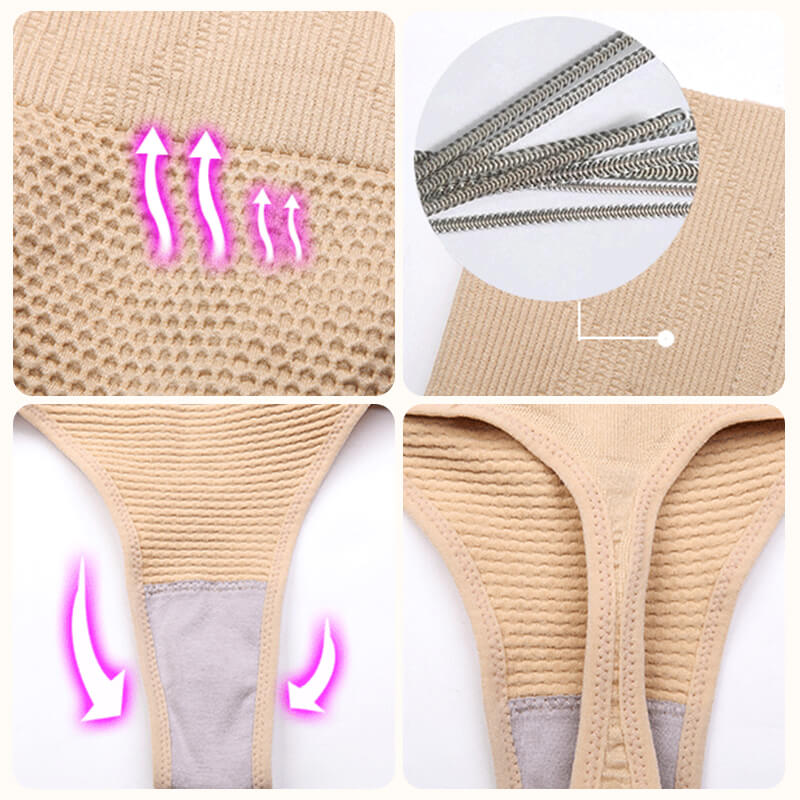 Ett silikonband under bysten förhindrar att plagget rullar ner, och spiral stålbenade stöd maximerar resultat och främjar en god hållning.