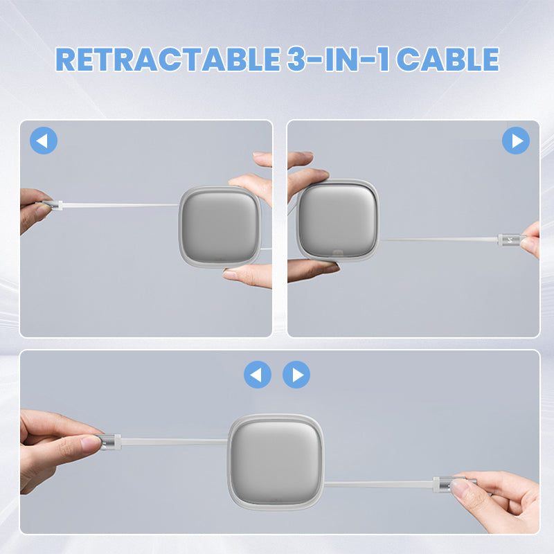 3 i 1 bärbar, utdragbar snabbladdningskabe