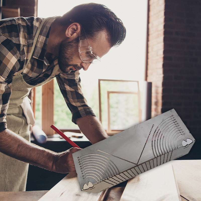 PRECIS MÄTNING:Denna markeringslinjal har tydliga, exakta markeringar med en 90° vinkeldesign, vilket garanterar en perfekt passform för fyrkantiga föremål. De utskurna linjerna gör det enkelt att rita bågar eller räta vinklar, vilket gör den till ett viktigt verktyg för precisionsarbete.