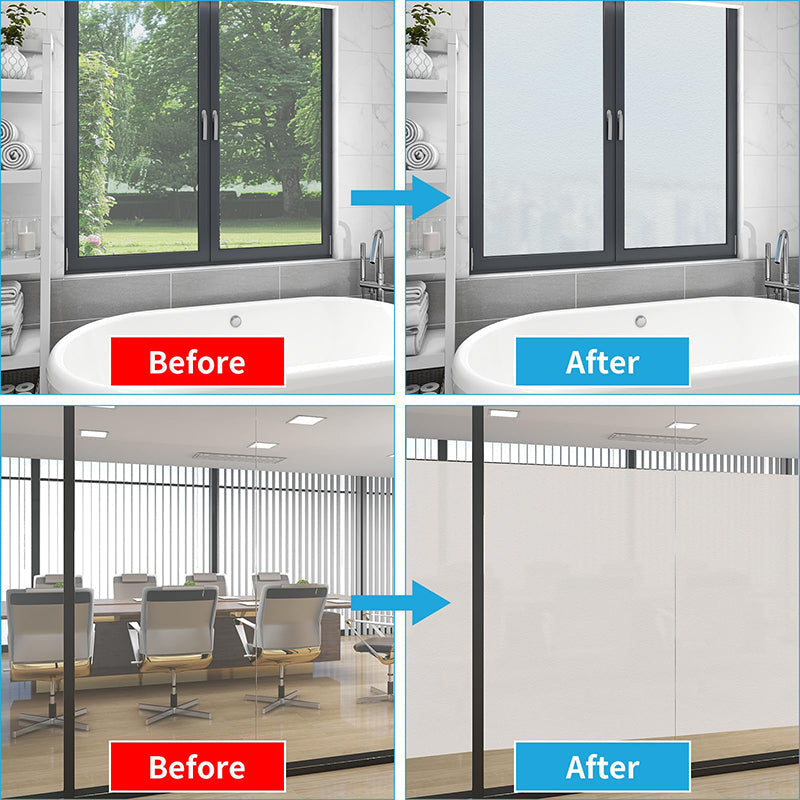 BRED ANVÄNDNINGSOMRÅDE - MÅNGSIDIG ANVÄNDNING: Idealisk för olika ytor och utrymmen, kan denna beläggning appliceras på fönster, dörrar, duschskärmar, glaspartitioner och mer. Använd den hemma, på kontoret eller i kommersiella miljöer för att förbättra integritet och estetiskt utseende.