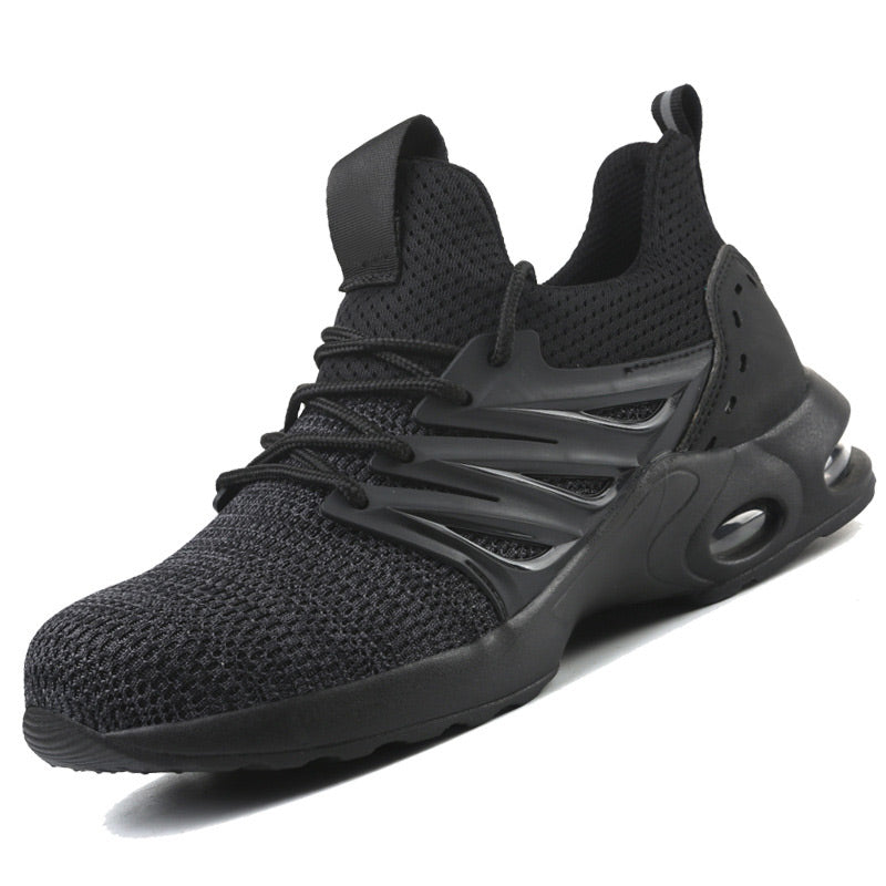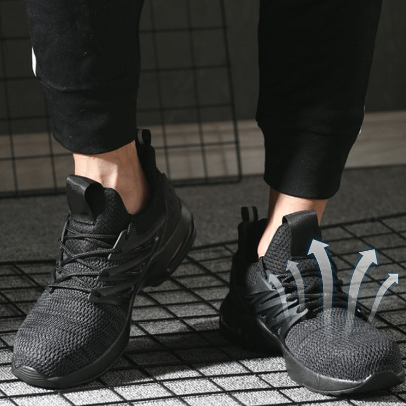 STÅLHÄTTA-SKYDD: Utrustade med förstärkta stålhättor skyddar dessa säkerhetsskor mot stötar och kompression, vilket håller dina fötter säkra från arbetsplatsfara.