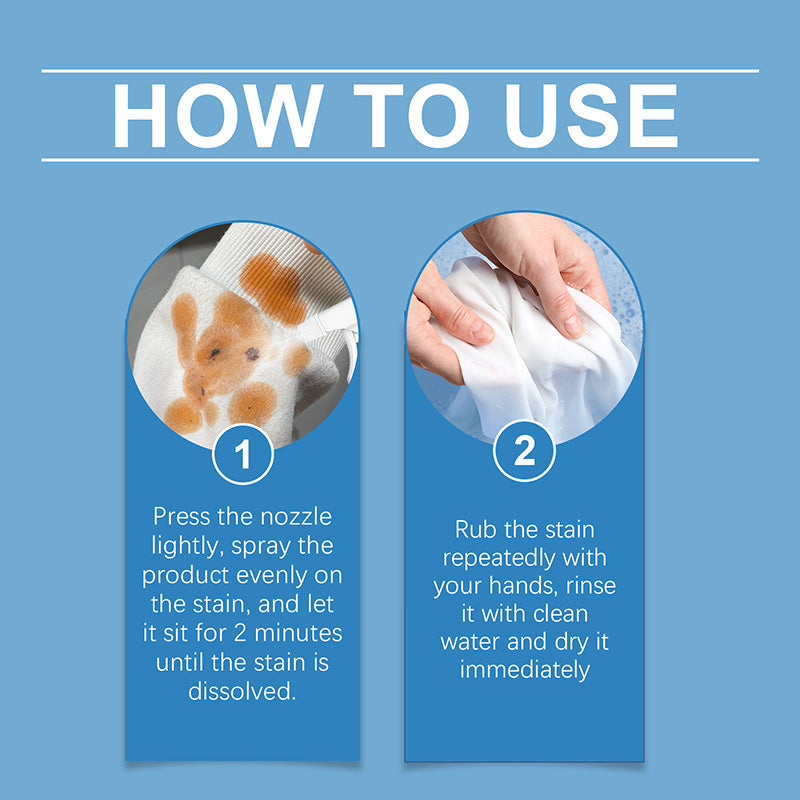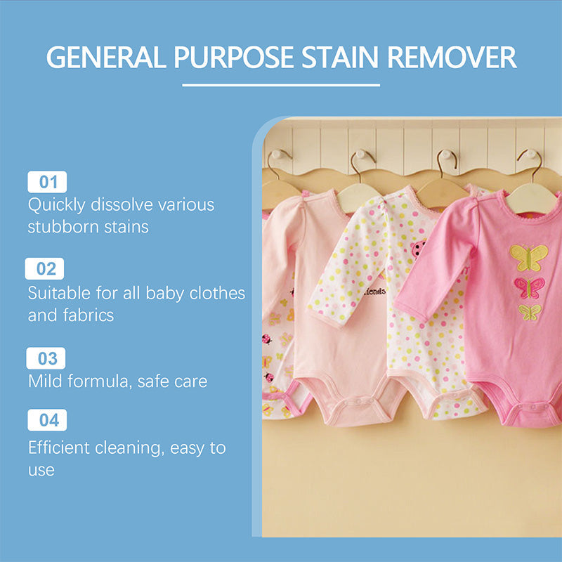 MÅNGSIDIG RENGÖRING - Denna mångsidiga rengöringsspray hanterar olika fläckar, inklusive svarta fläckar, gula fläckar och vattenmärken, och säkerställer att dina babykläder är fläckfria och fräscha.