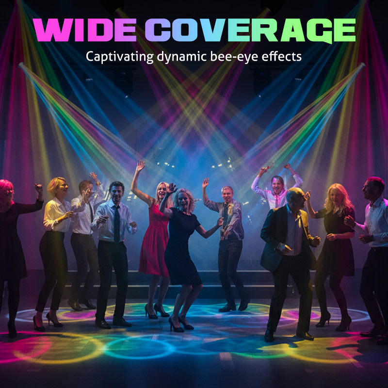 FLERA KONTROLLĂGEN - Inkluderar ljudaktiverade, automatiska och DMX-kontrolllĂ€gen. Denna mĂ„ngsidighet gör det möjligt för bĂ„de nybörjare och proffs att enkelt skapa invecklade ljussekvenser, perfekt synkroniserade med musik eller förprogrammerade för alla evenemang.