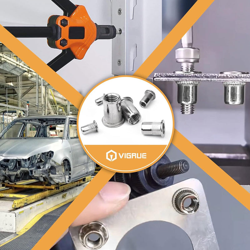 ENKEL INSTALLATION - Designade för enkel installation, dessa flata huvuden popnitmuttrar kan enkelt sättas in i förborrade hål. Med ett enkelt vrid får du ett fast grepp, vilket gör din monteringsprocess snabb och effektiv. Perfekt för både nybörjare och experter!