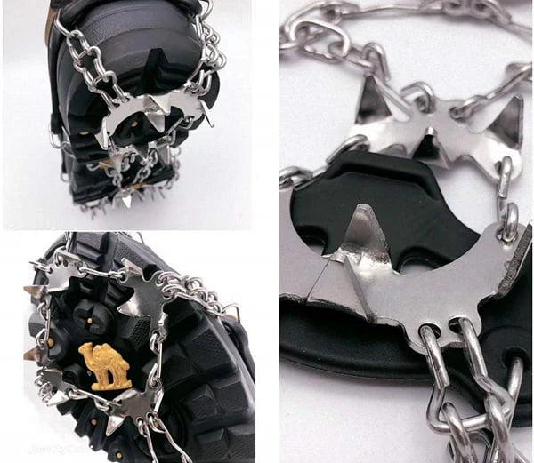 VÄra uppgraderade HalksÀkert grepp Spikes förhindrar att du halkar och skadar dig nÀr du gÄr pÄ snö eller is och de anvÀnds ofta av löpare, vandrare, gÄende och vinteridrottare.