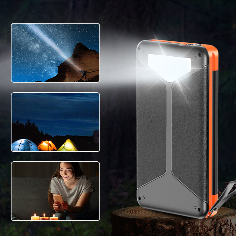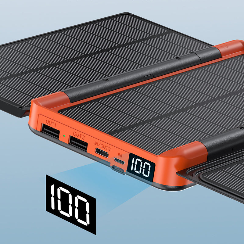 EFFEKTIV SOLCELLSLADDNING: Solcellsbanken är utrustad med 3 solpaneler och kan generera ström i direkt solljus, vilket ger en tillförlitlig energikälla för att ladda dina enheter när du inte är uppkopplad mot elnätet.