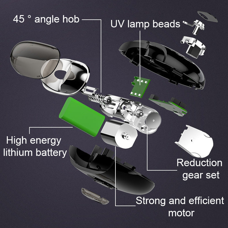 UV-DESINFEKTION  - Enheten tar hand om din hygien med ett dolt UV-ljus som aktiveras automatiskt nÀr maskinen slÄs pÄ. Det eliminerar bakterier pÄ dina fingertoppar, vilket sÀkerstÀller att dina naglar Àr lika rena som de Àr vÀltrimmade.