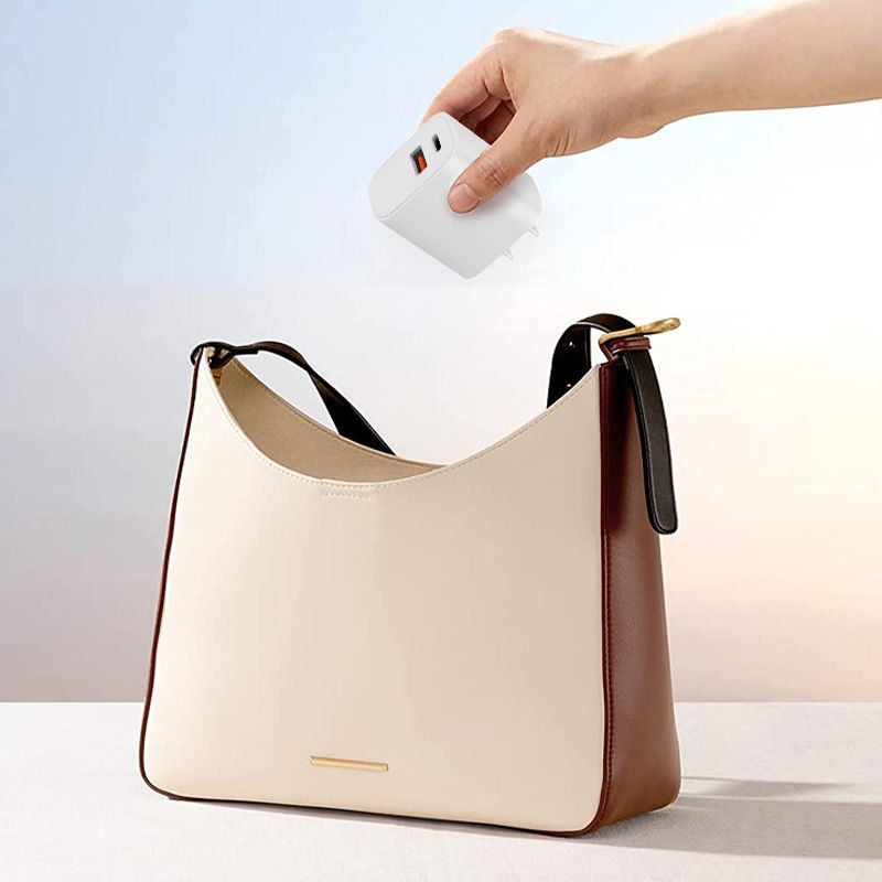 DUBBLA PD+QC3.0-PORTAR: Utrustad med två utgångsportar (USB + Type-C) kan du ladda två enheter samtidigt, spara tid och se till att alla dina enheter är laddade.