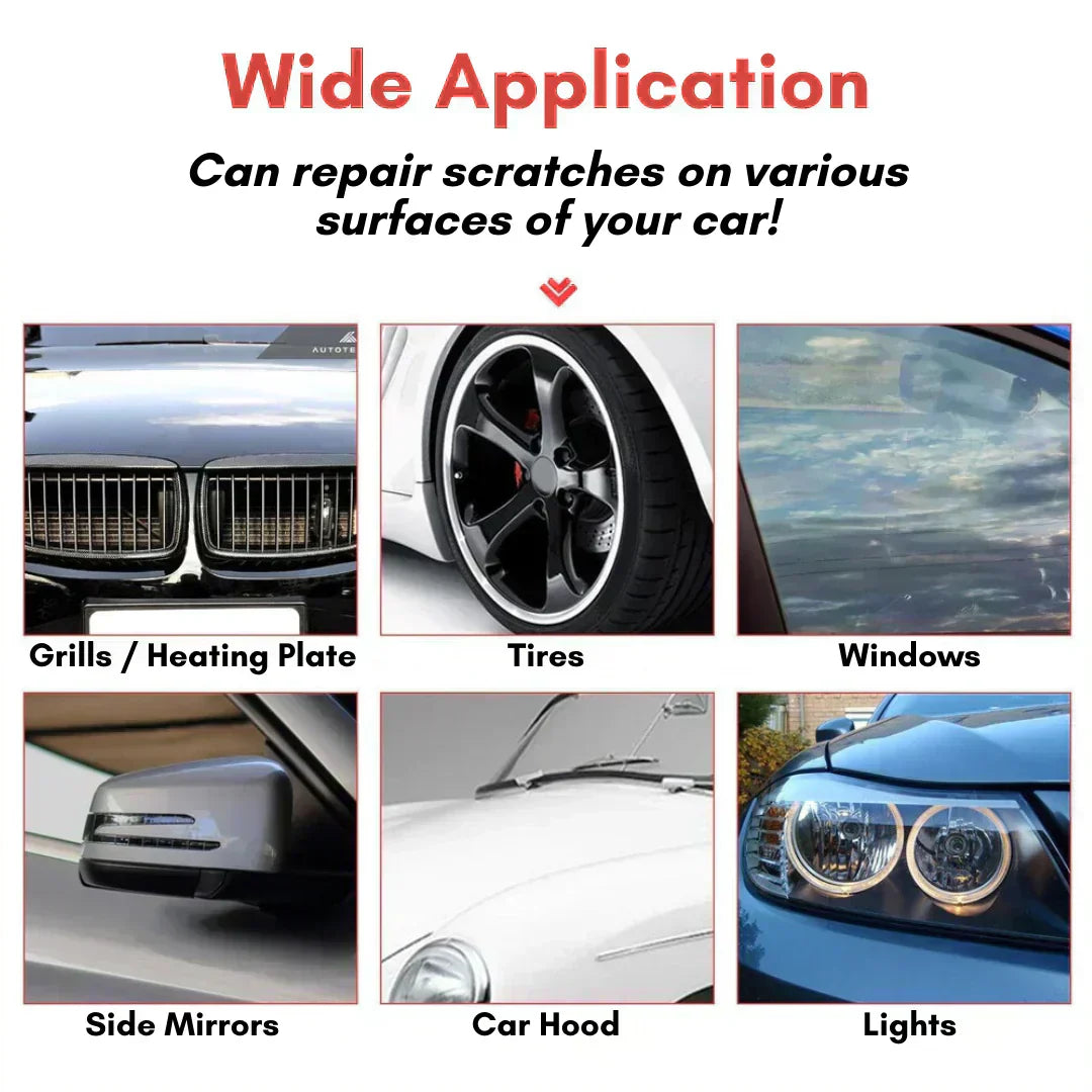 AEXZRâą:s banbrytande flytande klarlack fungerar nĂ€stan mirakulöst och fĂ„r effektivt Ă€ven de mest motstĂ„ndskraftiga reporna att försvinna. Den Ă€r kompatibel med alla bilar, oavsett fĂ€rg, mĂ€rke eller modell.