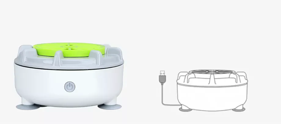 KOMPAKT, LĂTT ATT ANVĂNDA & HYGIENISK- AnvĂ€ndarvĂ€nlig design som passar alla kök. Placera bara i vatten, tryck pĂ„ knappen och tvĂ€ttmaskinen börjar arbeta, ingen skrubbning eller blötlĂ€ggning krĂ€vs.