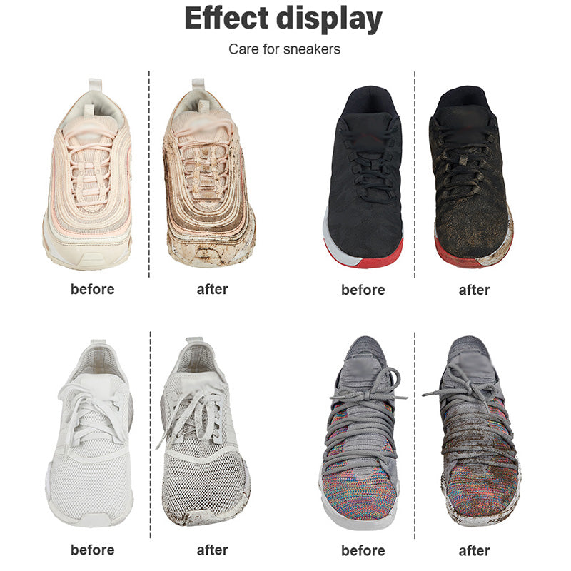 EFFEKTIV FLÄCKBORTTAGNING - Vår skumspray bryter effektivt ner och tar bort envisa fläckar, vilket gör skorna fläckfria.