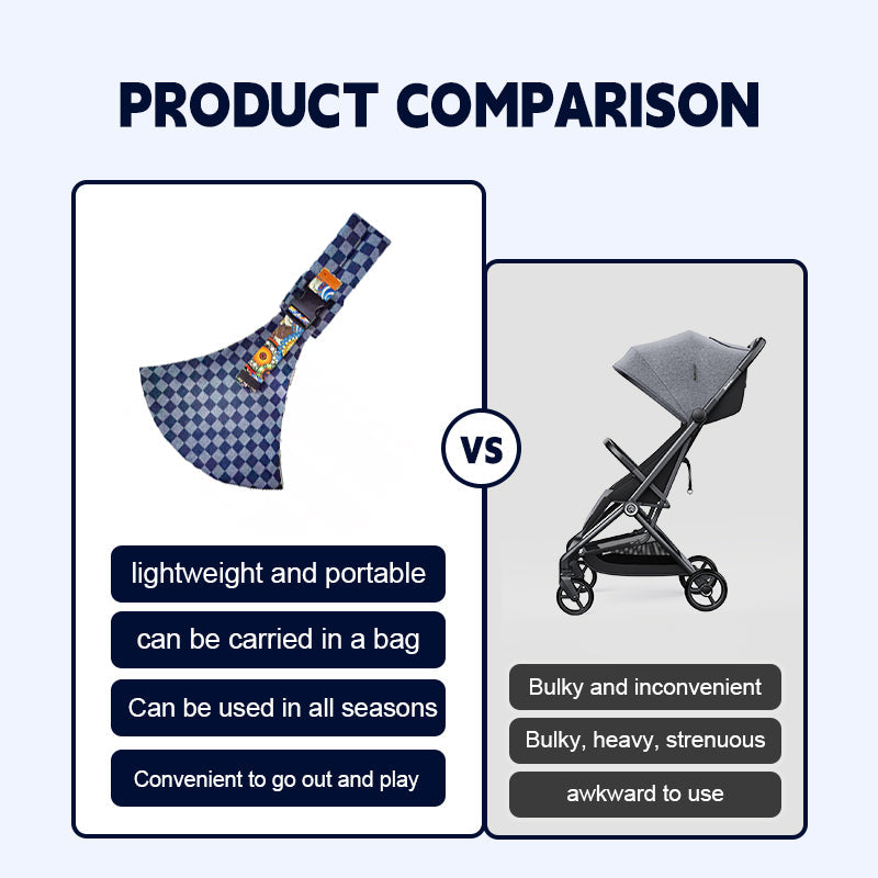 Bärbar och mångsidig: Bättre bärbarhet och mångsidighet än en barnvagn. Lätt att förvara i din väska, den klarar av olika väder och miljöer, såsom regniga dagar och trånga utrymmen.