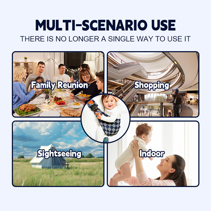 Oavsett om det är en familjeutflykt eller dagliga aktiviteter, kan denna Axelremsbärsele för bebisar ge dig en bekväm och praktisk upplevelse, så att dina axlar får vila och ditt barn får noggrant omhändertagande.