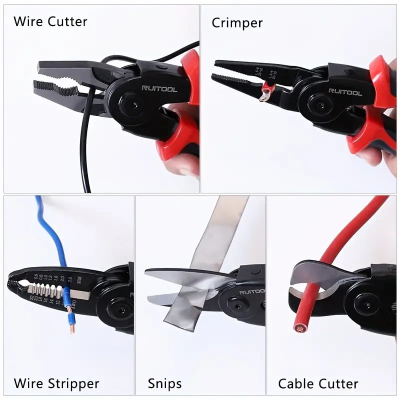 Vad fÄr du? 5 i 1: 1 tung trÄdtÄng, 1 10-22 AWG trÄdavdragare, 1 10-22 AWG skÀrverktyg, 1 diagonaltÄng, 1 plÄtsax (lÀtt att snabbt skÀra 19 # plÄt) och 1 hÄrd resvÀska