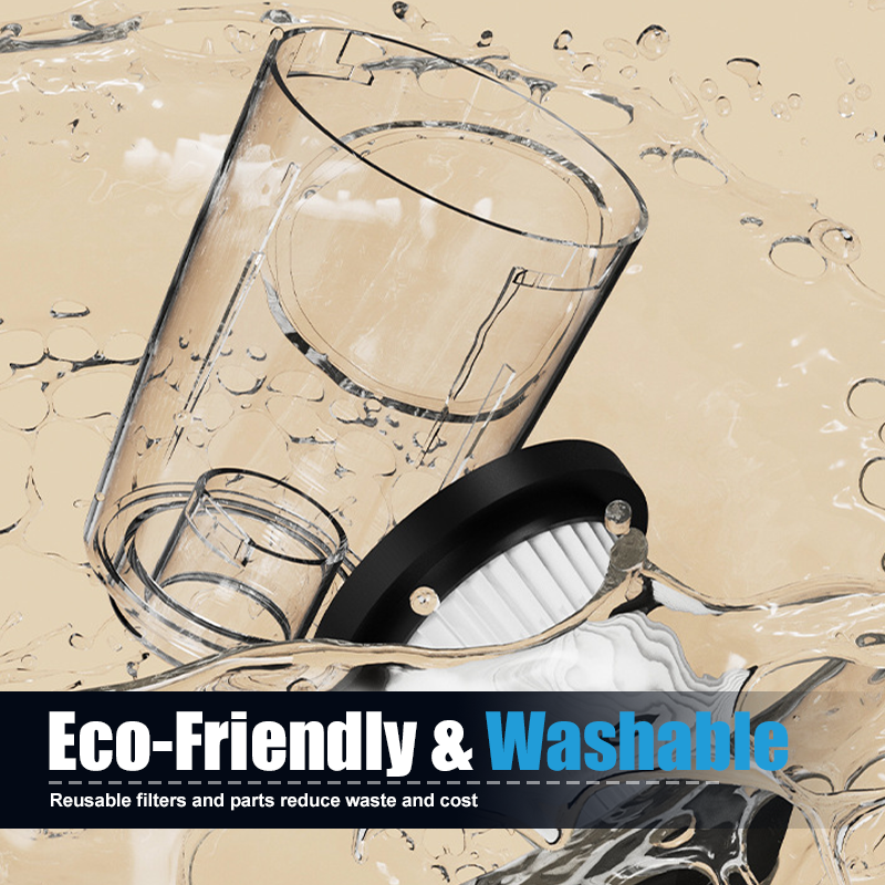 ENKELT UNDERHĂ LL OCH MILJĂVĂNLIGT  â Alla filter och munstycken Ă€r tvĂ€ttbara och Ă„teranvĂ€ndbara. Detta sparar pengar och minskar avfall. DammbehĂ„llaren pĂ„ 600 ml minimerar tömningsfrekvensen och sĂ€kerstĂ€ller oavbrutna rengöringssessioner.