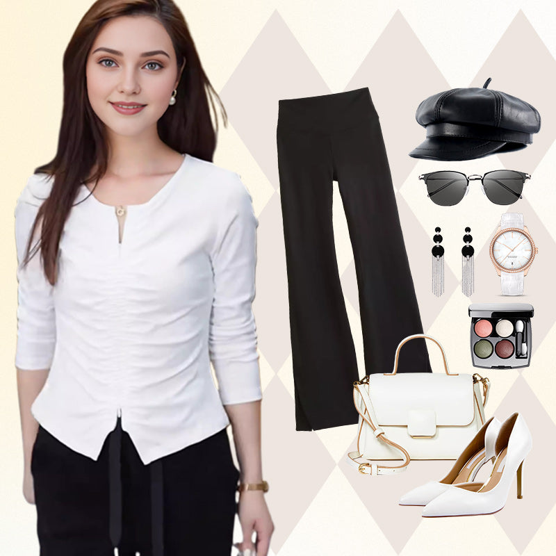 FLATTERING FIT FOR ALL BODY TYPES: Designed with a relaxed yet tailored fit, this long-sleeved top flatters every figure. The strategically placed pleats help to create an hourglass silhouette, enhancing your curves without compromising comfort.
