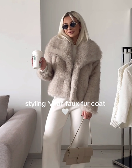 LYXIGT MJUKT TYG: Tillverkad av högkvalitativ polyester, har denna fuskpälsjackor en ultra-mjuk, fluffig yta som känns underbar mot huden och ger värme utan att kompromissa med stilen under de kalla vintermånaderna.
